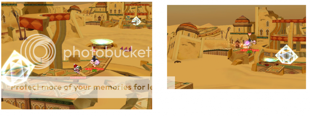 Para saltar longe NÃO PULE E CORRA, apenas pule no portal e solte o teclado... seu personagem irá voar até a plataforma que tem um baú (na vdd um pouco depois... Você pode interromper o pulo usando as setas para parar na plataforma do baú), ai basta ir pulando (ou voando dependendo da sua classe...) pra plataforma final. No meio tem uns peixes roxos dentro da areia movediça... eles não dão muito dano, mas te atrasam...